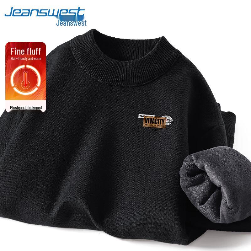 Jeanswest Men's Thickened Fleece Half-Turtleneck Knit Sweater