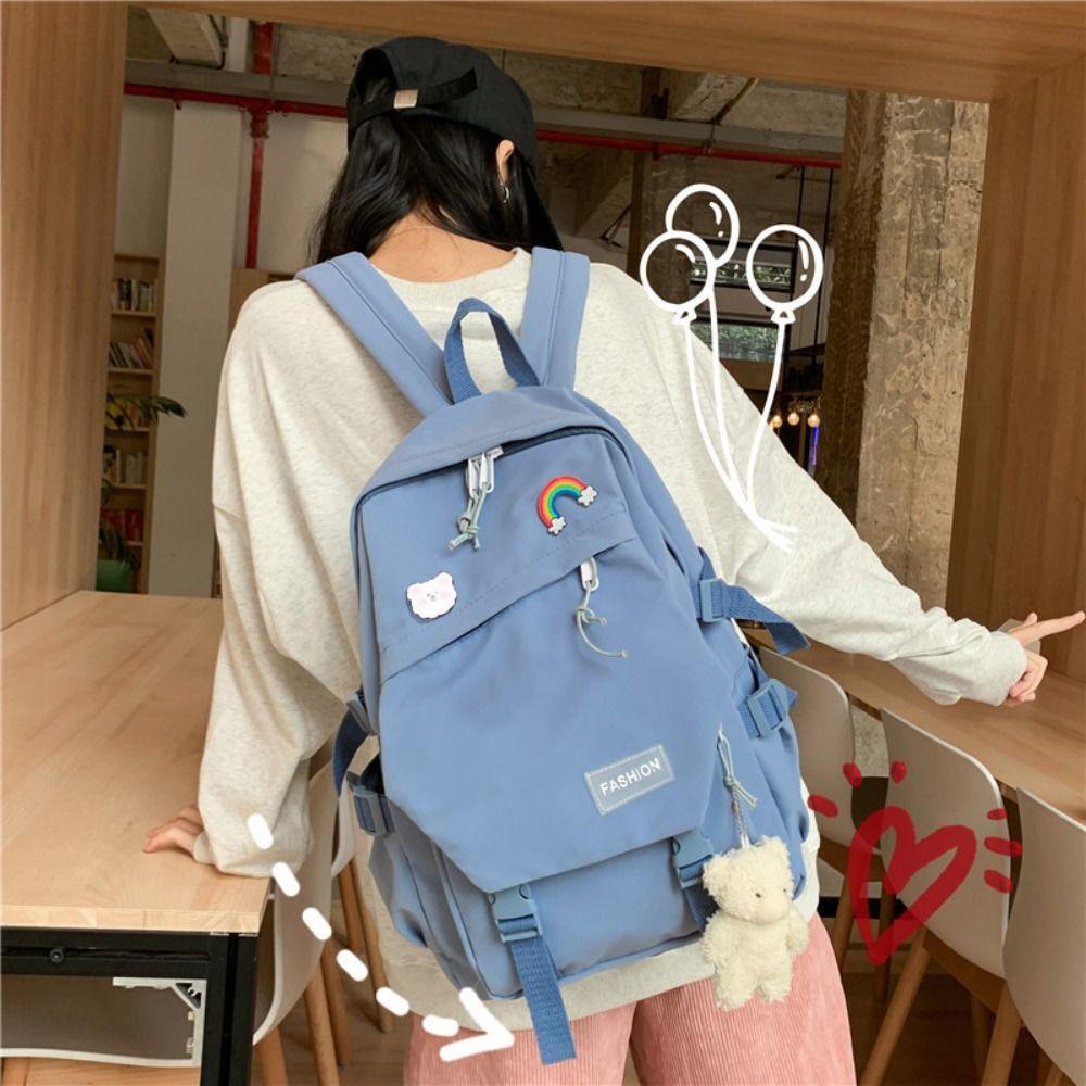 Nylon Large Capacity Bags Canvas Korean Style School Bag Sweet Badge Shoulder Backpack Student