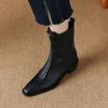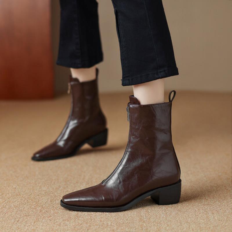 Nouvelles bottes de mode grande taille pour femmes, semelle en caoutchouc surface en cuir, talon moyen, bottes mi-mollet, automne et hiver talon carré version coréenne o