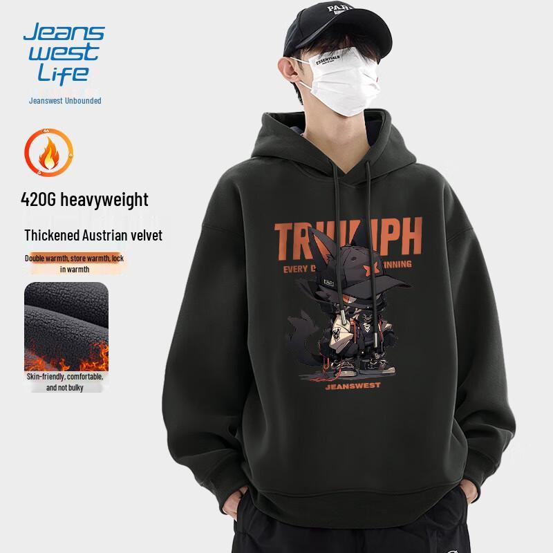 JEANSWEST LIFE Sweat-shirt à capuche en polaire épais pour homme