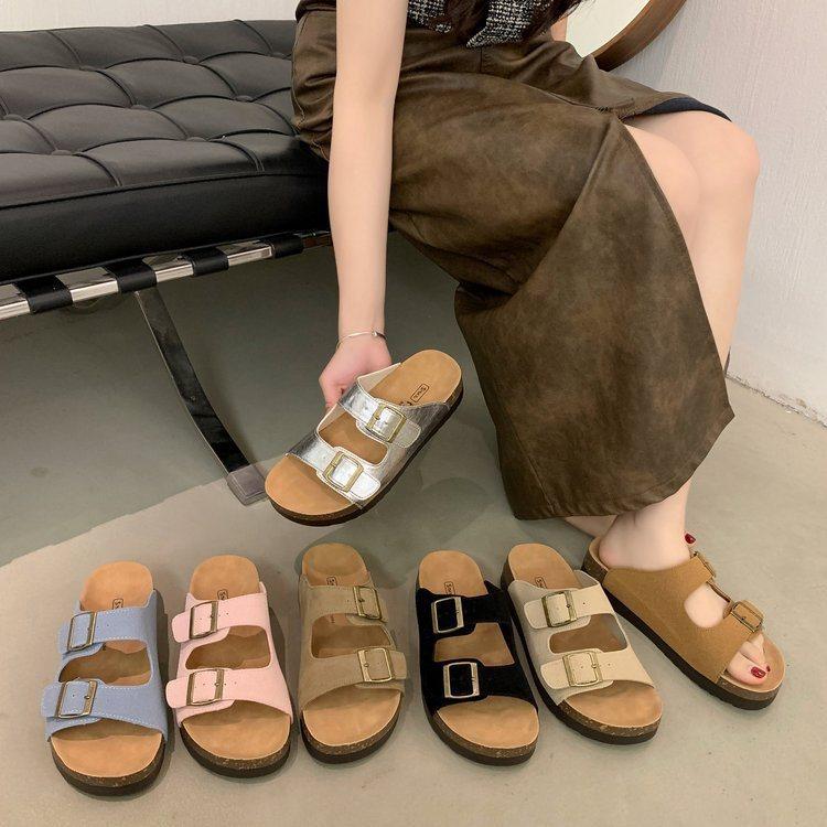 Vêtements d'extérieur été polyvalents chaussures pour femmes mode célébrité Internet chaussures de plage bord de mer claquettes plates décontractées de vacances vêtements d'extérieur