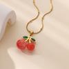 New creative three-dimensional cherry pendant necklace titanium steel pendant material fruit series collarbone chain letter pendant
