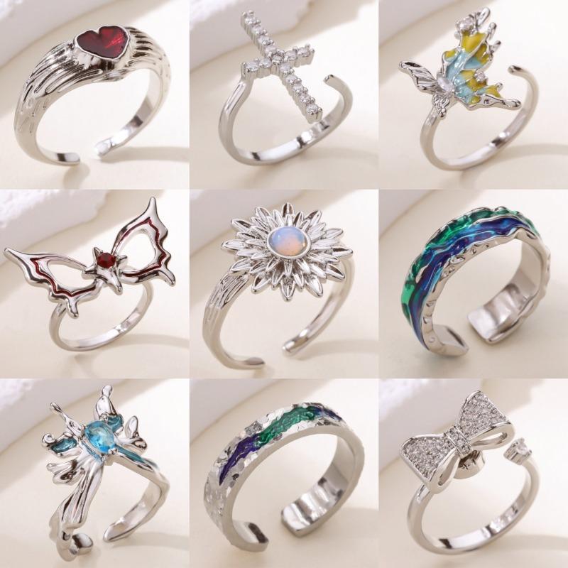 Color oil drop butterfly sun silver ring women's niche design light luxury high sense exquisite fashion ring