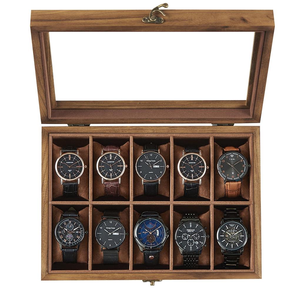 SONGMICS Watch Case for 10 Wooden Watch Collection Case with Transparent Watch Accessory Day Birthday Celebration JOW100K01 Watches, Storage, Window,