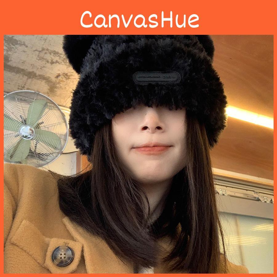 Elegant Bear Plush Knit Hat For Women Winter Warm Thick Fur Beanie Cap