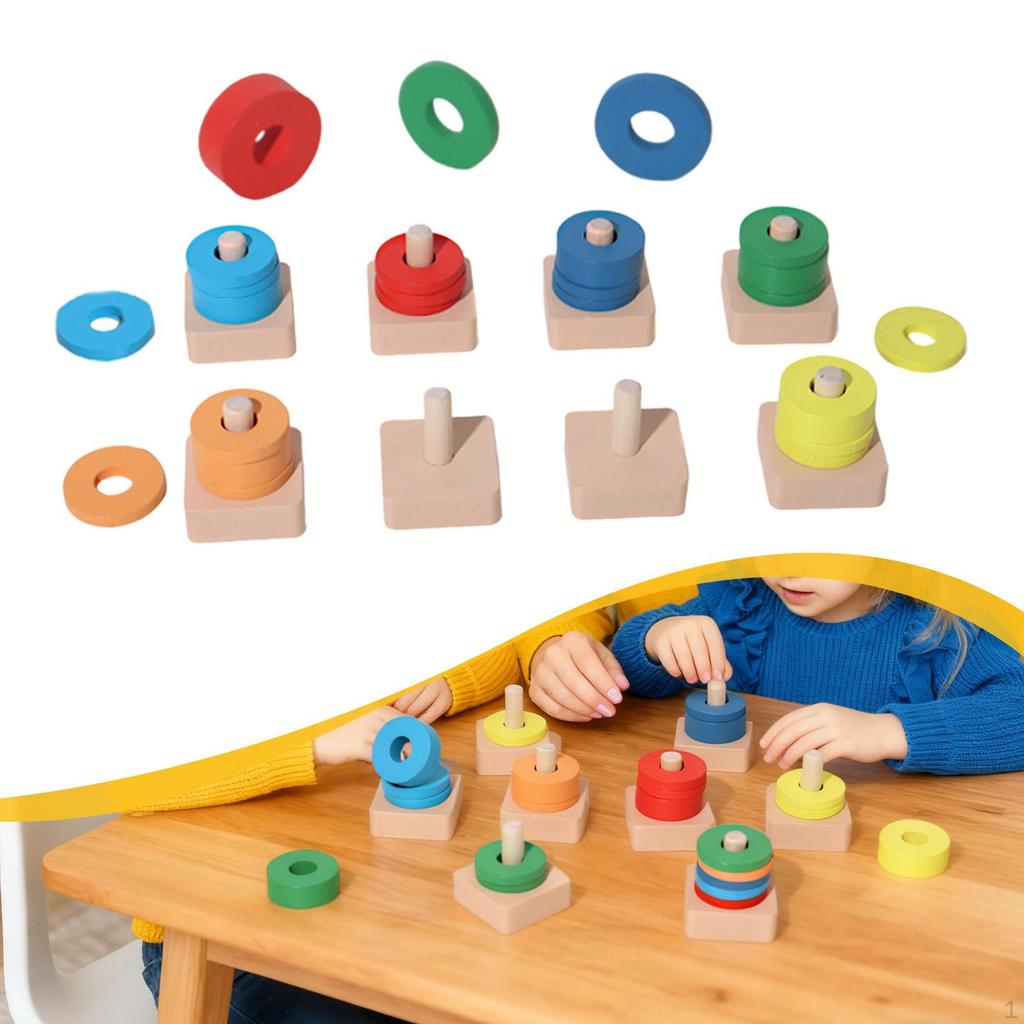 Wood Color Sorting Stacking Toys Sensory Toy Logical Thinking Training Party Supplies Children Boys