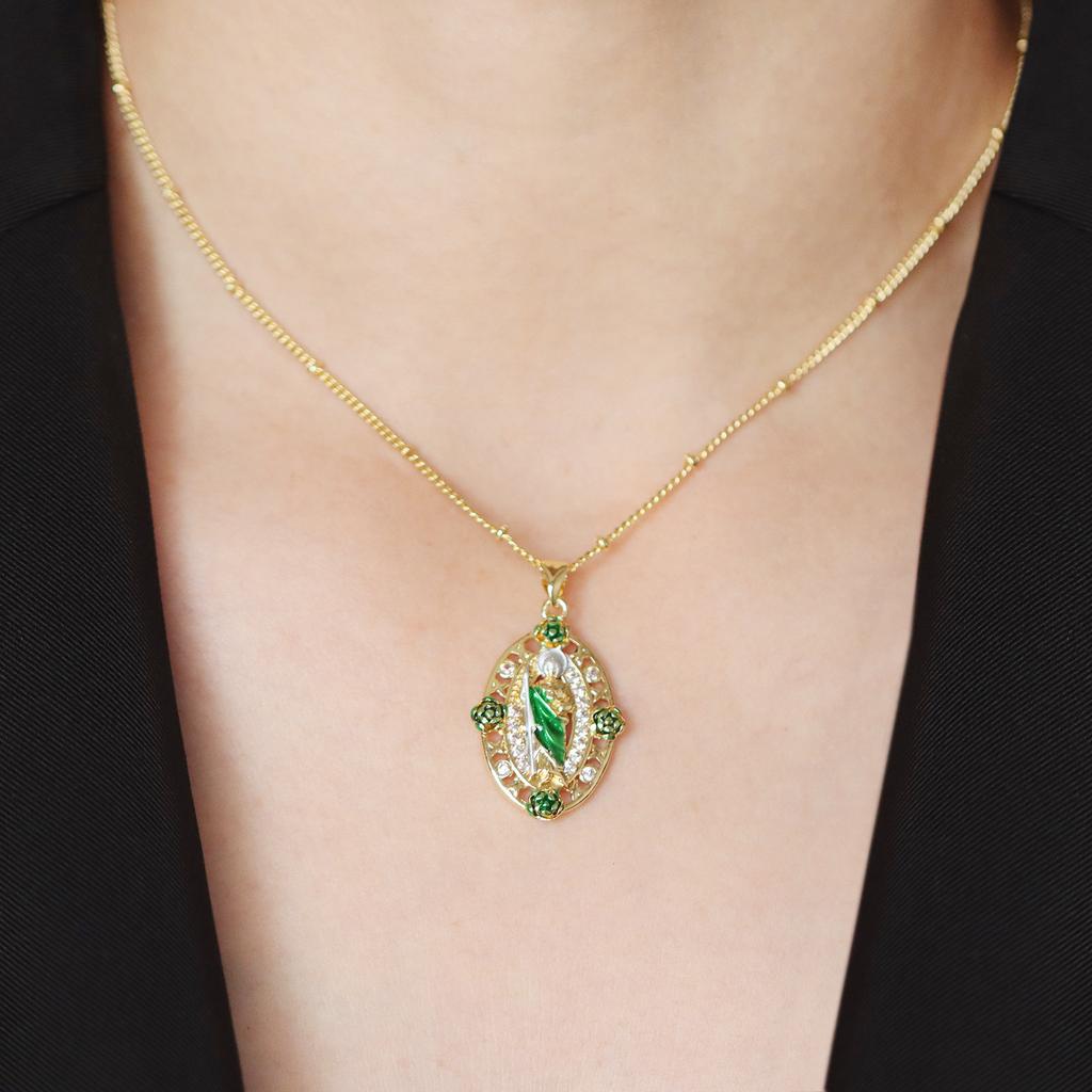 Personnalité Luxe Léger Haut Sens Vierge Marie Incrusté Zircon Cuivre Plaqué Or Collier Chaîne à Billes Clip Latéral