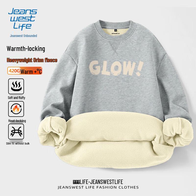JEANSWEST LIFE Men's Fleece-Lined Round Neck Sweatshirt