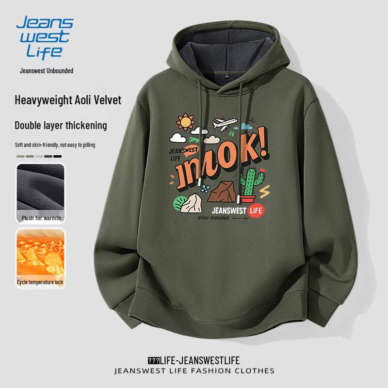 JEANSWEST LIFE Men's Heavyweight Fleece Hooded Sweatshirt