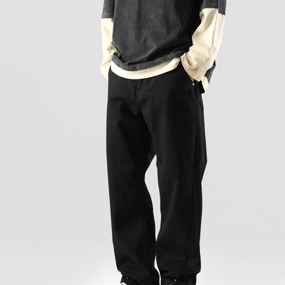 Jeans droits polyvalents style urbain pour hommes, taille grande, style japonais, pantalon noir pour le trajet