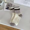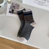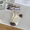 Women's Striped Mid-Calf Cotton Socks: Trendy Rolled-Edge Retro Japanese Color Block for Spring, Autumn, and Winter