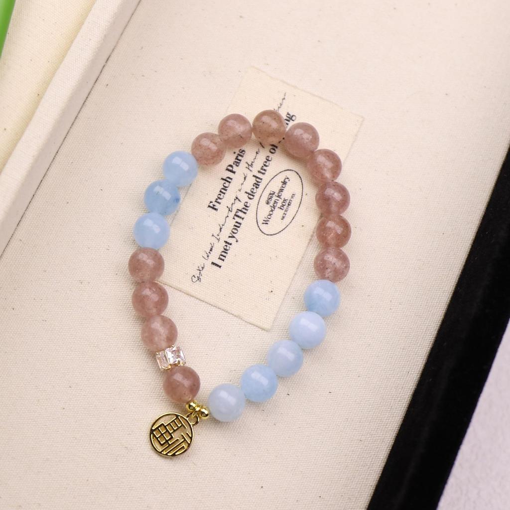 Bracelet en Cristal de Fraise Naturel & Jade de Birmanie avec Zircon - Nouveau Style Chinois 2025 pour Femmes