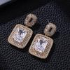 European and American Bold Super Flash Zircon Geometric Square Earrings for Evening Dress