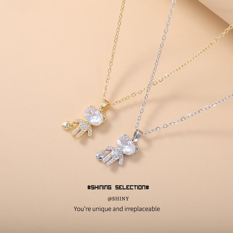 Collier pour femme en cuivre pur avec pendentif ourson en zircon micro-incrusté: Bijoux de chaîne claviculaire hip-hop luxueux, de niche et polyvalents