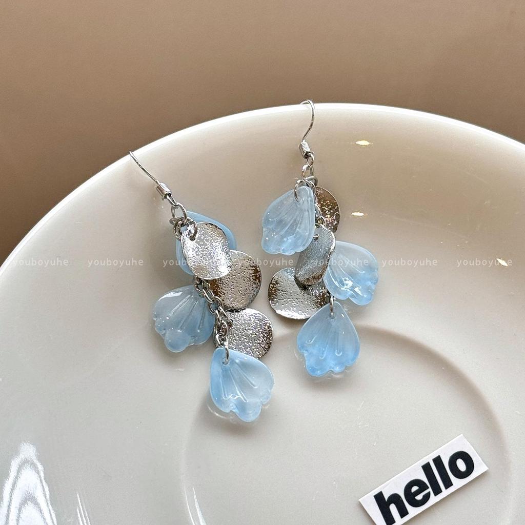 Boucles d'oreilles pendantes pétale coquillage dégradé bleu: Boucles d'oreilles d'été magnifiques pour les vacances à la plage 2025