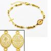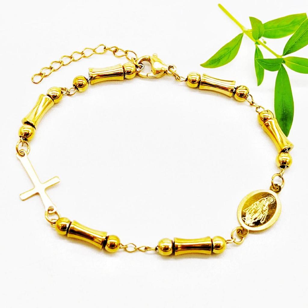 Bracelet de protection pour femme en perles de bambou dorées et croix