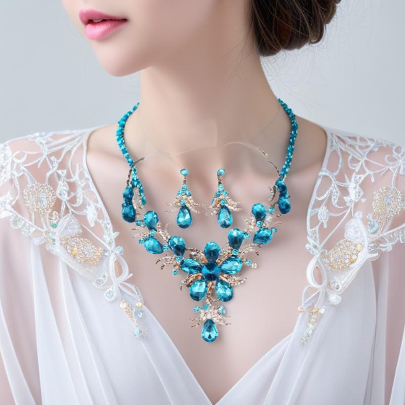 Collier Pendentif Exagéré en Agate Rubis pour Tenue de Mariée