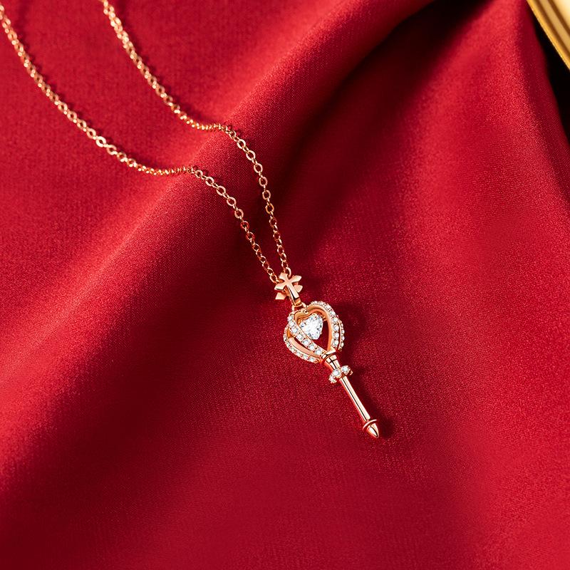 Collier Sceptre Cœur en Argent Sterling Star City - Pendentif de Luxe Léger pour Femme avec Détails Micro-Sertis sur Chaîne Claviculaire