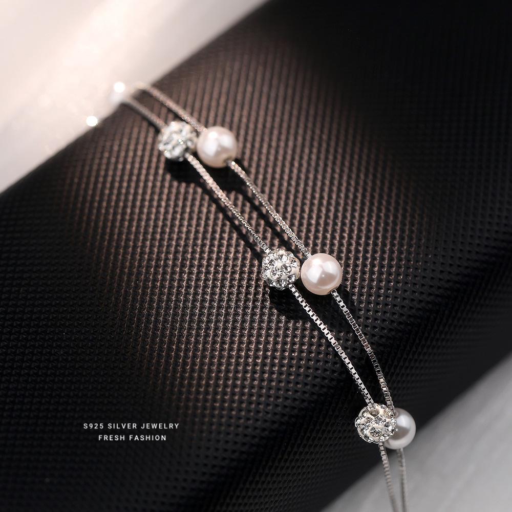 S925 Sterling Silver Double-Layered Starry Pearl Bracelet for Women - High-End, Elegant Design