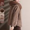Manteau Court pour Femme Nouveau Cardigan Extérieur en Velours de Vison à Capuche Printemps et Automne Ample Polyvalent Veste Pull