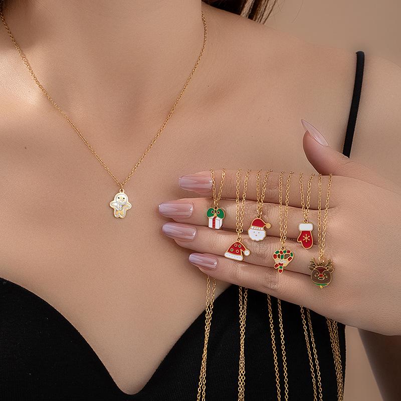 Collier avec Pendentif Renne de Noël à Gouttes d'Huile et Nœud, Boîte Cadeau pour Femme - Bijou Élégant Chaîne de Clavicule Européenne et Américaine.