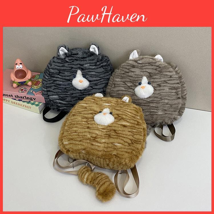 Sac à dos Chat en Peluche Mignon avec Design de Queue Sac Fourre-tout Adapté pour les Déplacements Quotidiens