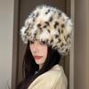 New Plush Leopard Print Fisherman Hat for Women in Winter Cold Protection Ear Protection Bucket and Basin Hat Face Friendly Versatile Hat Trendy