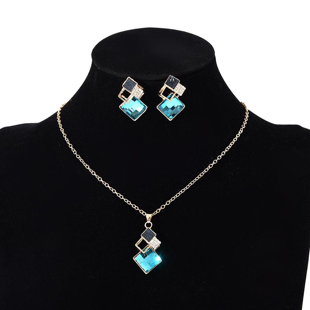 Ensemble Collier Carré & Boucles d'Oreilles Style Coréen - Bijoux de Mariée Simples, Élégants & Polyvalents