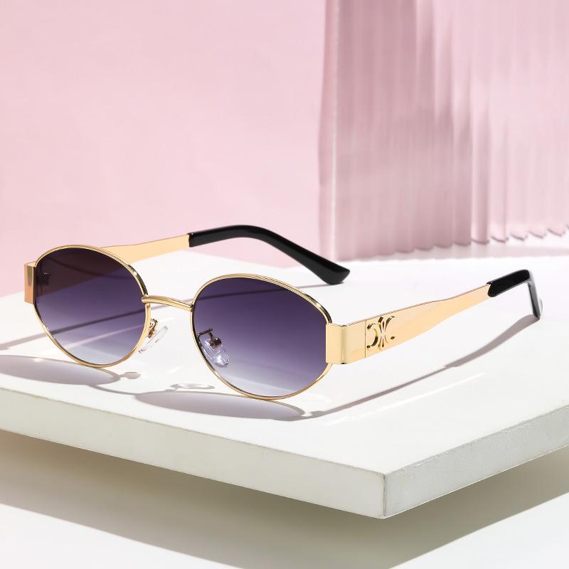 Lunettes de soleil ovales métalliques rétro à monture dorée pour femmes, petit visage, style français