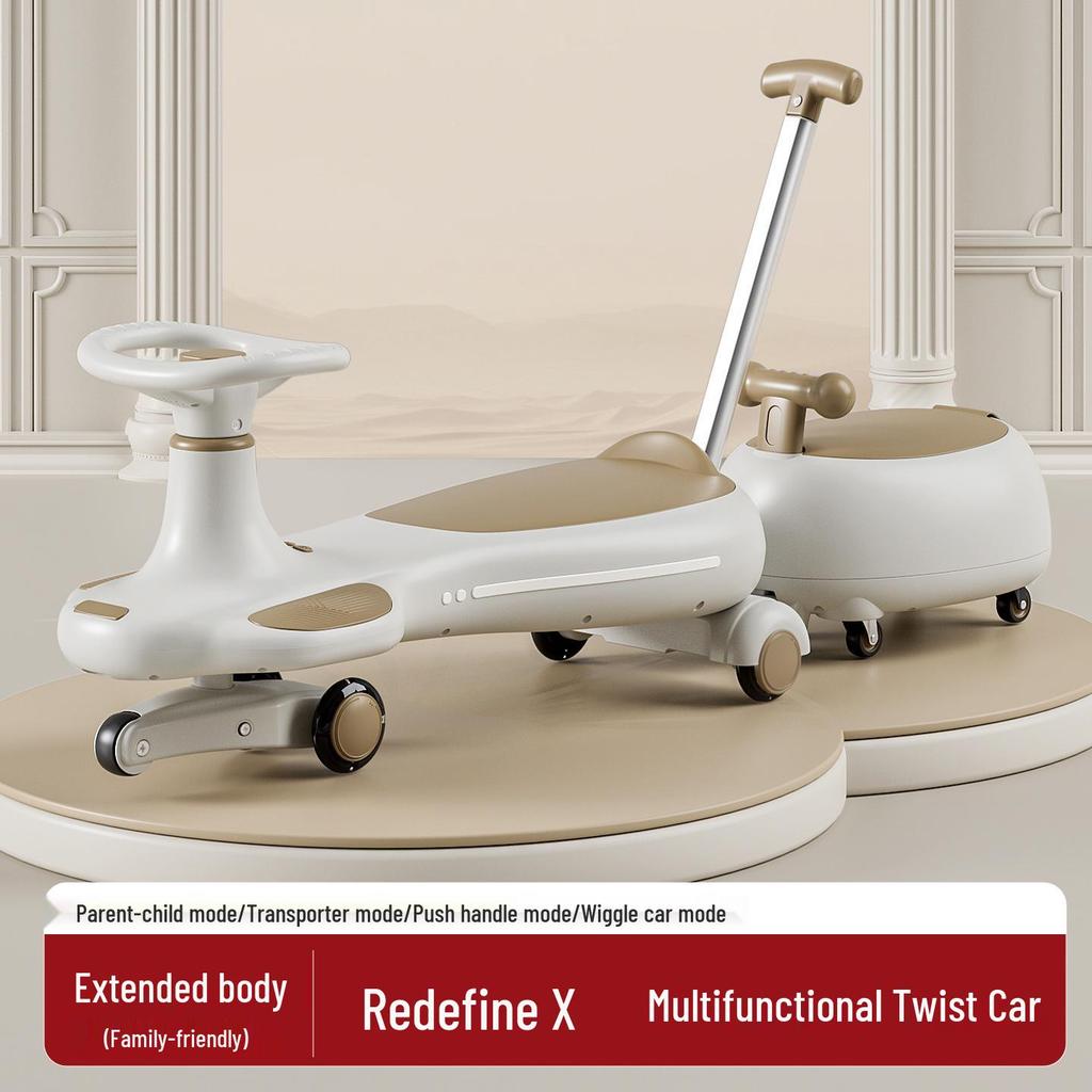 Children's Twist Car with Parent-Child Co-Riding, Suitable for Ages 1-8, Silent Wheels, Push Rod & Handle, Adult-Friendly Wiggle Car.