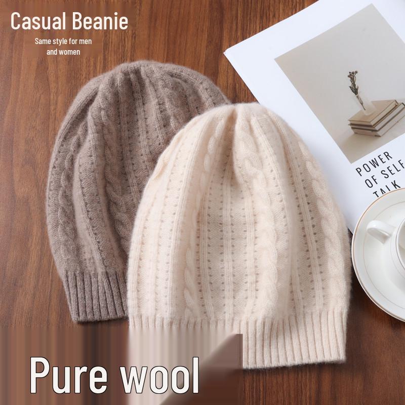 Chapeau en tricot 100% laine chaude unisexe pour l'automne et l'hiver - Casquette décontractée, anti-froid, polyvalente, ample pour l'extérieur