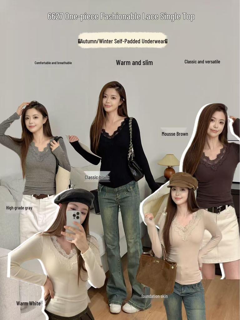 Feizi Ji Top col V avec bordure en dentelle et coussinets de bonnet fixes - Couche de base douce et respectueuse de la peau