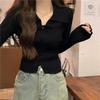 Pull Tricoté Slim Petit à Manches Longues et Col Polo pour Femmes - Collection Début d'Automne
