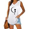 T-shirt Femme Mode Col V Sans Manches T-shirt Femme Débardeur Décontracté Imprimé Chat