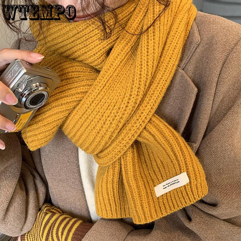 Écharpe Douce Tricotée pour Femmes Couleur Unie Style Collège Écharpe Chaude