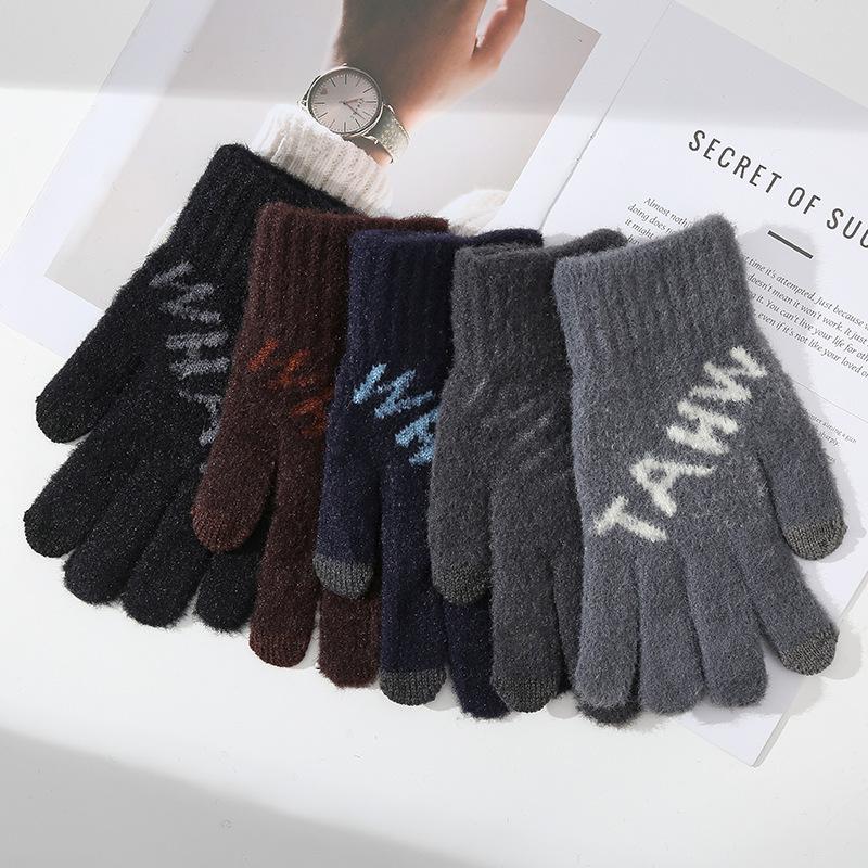 Gants Chauds Homme Hiver Protection Froid Épaissis Couleur Unie Doigt Entier Extérieur Cyclisme Tricot Tactile Cinq Doigts
