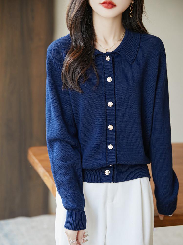 Cardigan ample côtelé pour femme 100% coton - Col rabattu, Tricot simple boutonnage pour le printemps et l'automne