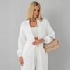 Cardigan Long en Tricot Cachemire Faux Vison Blanc pour Femme - Doux, Ample, Style Décontracté pour l'Automne et l'Hiver