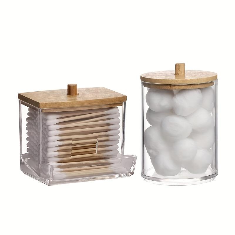 2 Pcs Porte-cotons-tiges Récipient de salle de bain avec couvercles en bois, 10 OZ, 7 OZ Distributeur de cotons-tiges, Pot organisateur d'apothicaire pour boîte de rangement