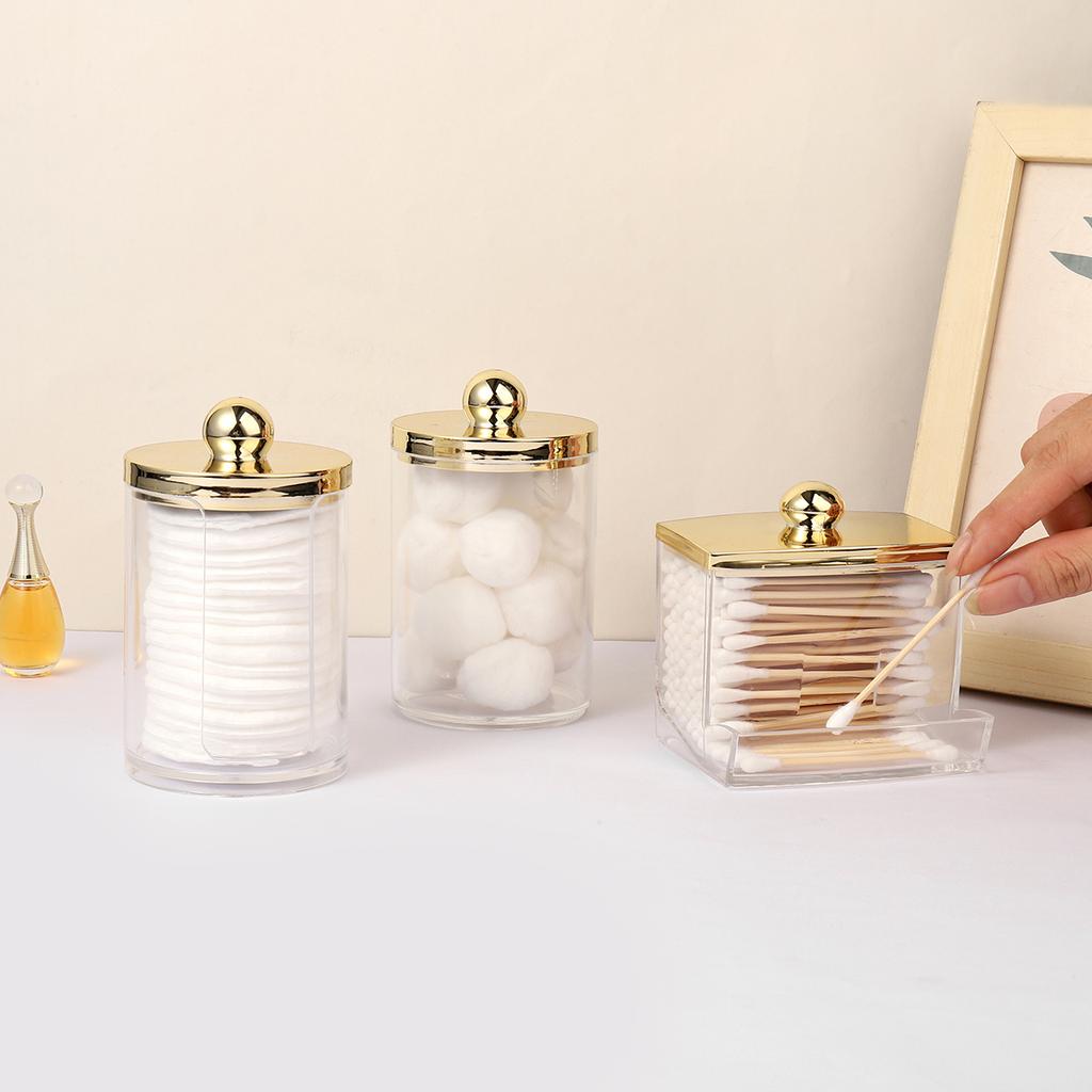 1/3 pcs Qtips Dispenser Bathroom Container with Golden Lid , 10 oz Cotton Ball Holder, Clear Plastic Apothecary Jar Organizer