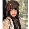 Cute Bear Hat for Women in Autumn and Winter Warm and Face Friendly Small Ear Protection Hat Buttoned Beanie Plush and Fluffy