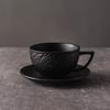 Mug à café latte en céramique à motif de roches, tasse délicate pour le thé de l'après-midi, ensemble de tasses noir et blanc avec soucoupe ronde
