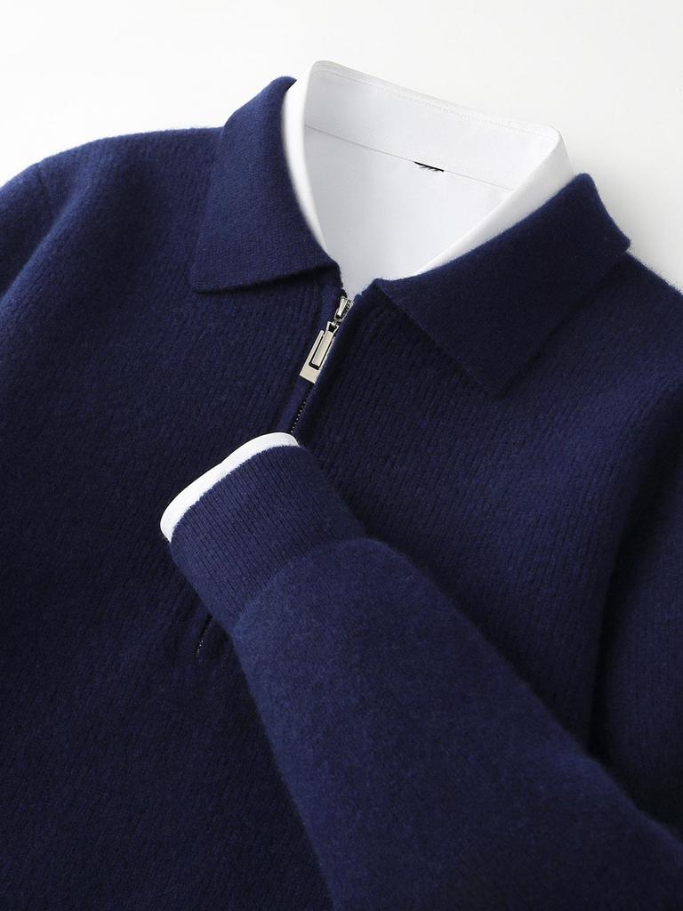 Men's Business Casual Pure Wool Half-Zip Polo Sweater - Autumn/Winter Loose Knit Pullover
