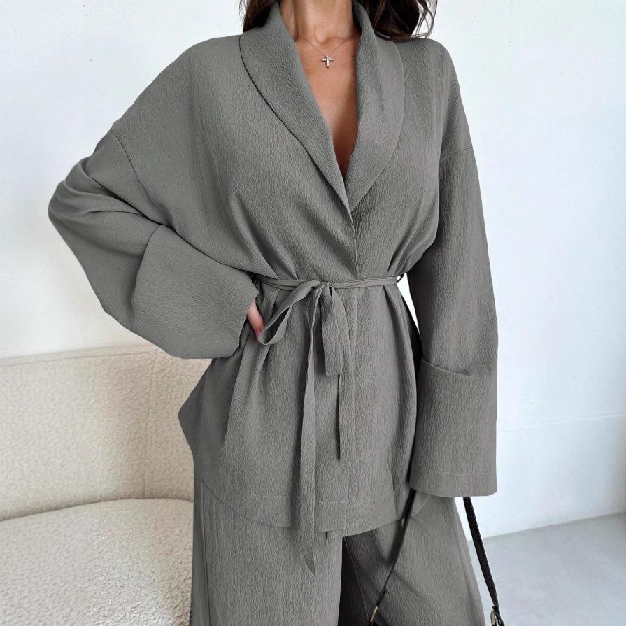 Présentation d'un ajout élégant et polyvalent à votre garde-robe: un ensemble pour femme à col en V conçu pour la saison Automne/Hiver 2025. Confectionné en polyester de haute qualité, cet ensemble comprend un haut à manches longues associé à un pantalon à jambes larges, combinant confort et style sans effort.. Le motif uni est agrémenté avec goût d'une décoration imprimée unique, rehaussant son allure sophistiquée mais sportive.. Idéal pour les occasions décontractées et plus raffinées, cet ensemble promet de vous garder élégant et confortable tout au long des mois les plus frais.