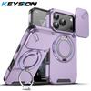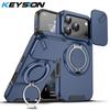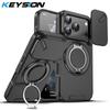 KEYSION 360° Rotating Ring Stand Phone Case for iPhone 17 Pro Max Silicone+PC Slide Camera Protection Magnetic Shockproof Cover