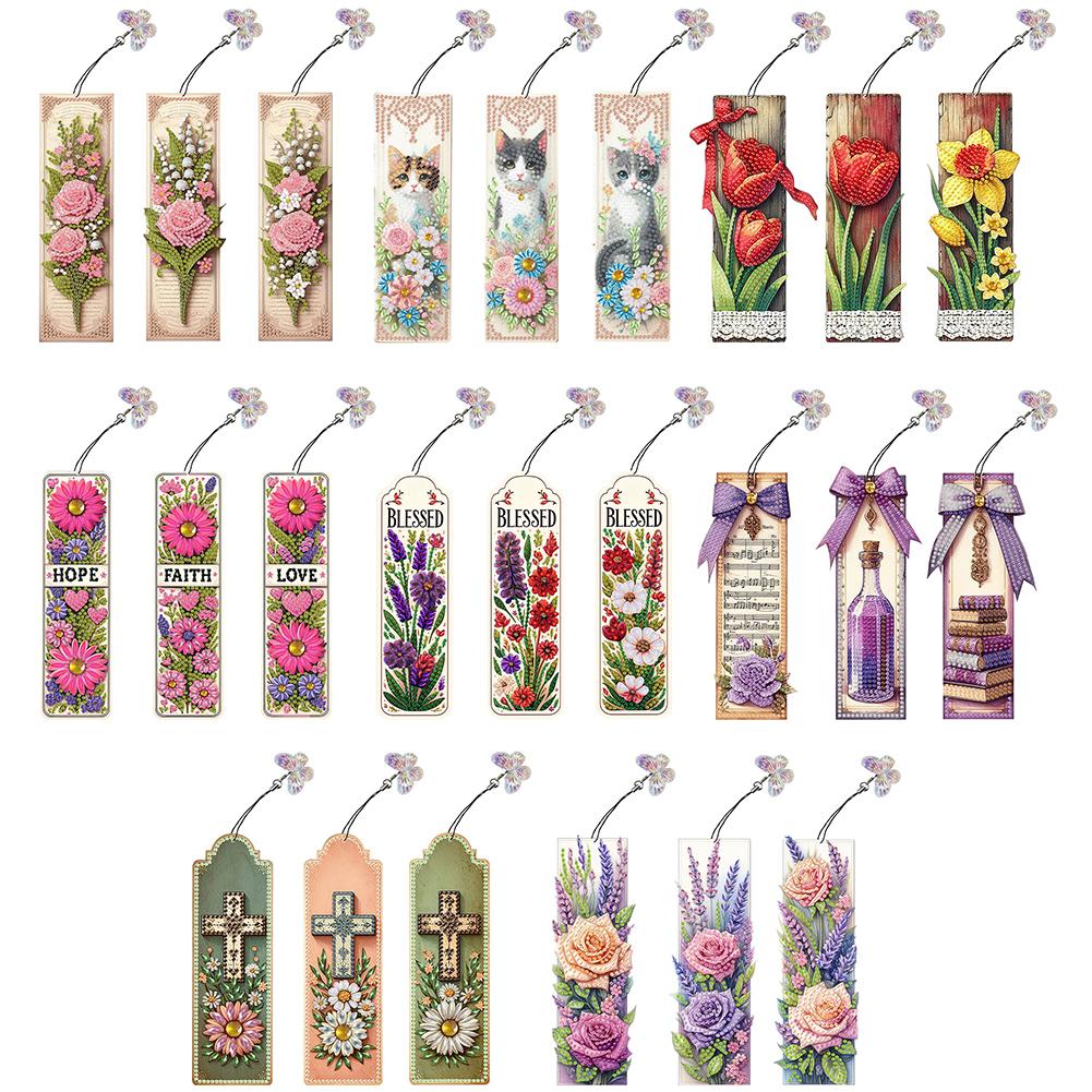 3Pcs Special Shape Rose Bouquet DIY Bookmarks Diamond Painting Kits Diamond Art Bookmark with Pendant for Kids Adults Beginners
