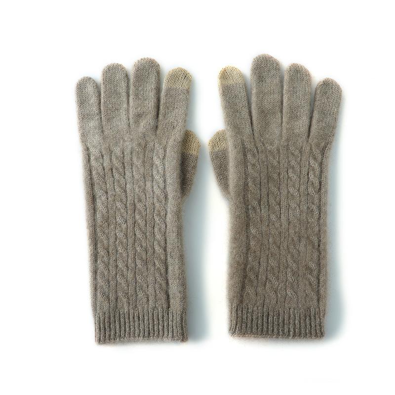 Touch Screen Gloves Cashmere Autumn and Winter New Style Unisex Twisted Pattern Warm Cycling Windproof Knitted Five Finger
