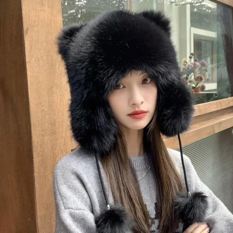 Thickened Winter Hats For Women Keep Warm Windproof Furry Trapper Hat With Cute Tail Ear Protectors Bomber Hat Winter