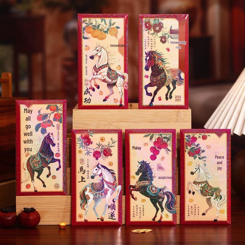 Enveloppes Rouges Année du Cheval 2026 - Mignon Lai See de Style Chinois pour Vœux du Nouvel An et de la Fête du Printemps