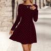 Robe élégante à manches longues pour femmes, en velours à pois, incrustée de diamants, cintrant la taille et amincissante